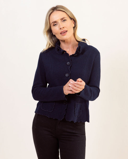 See Saw Boiled Wool Ruffle Trim Jacket