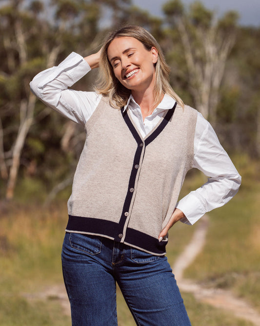 Merino WoolSee Saw Navy Merino Knitted Vest