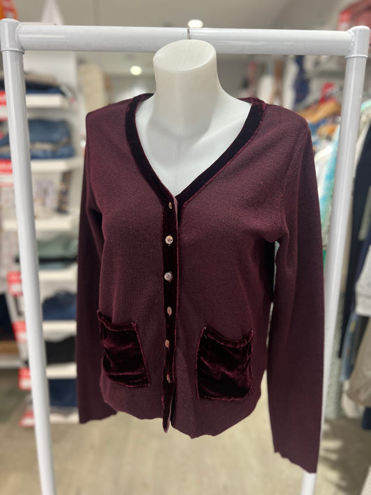 Cut Loose Crop Cardigan with Velvet Trim
