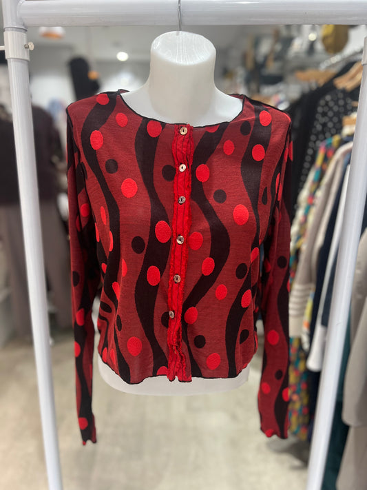 Cut Loose Polka Dot Cardigan with Velvet Trim