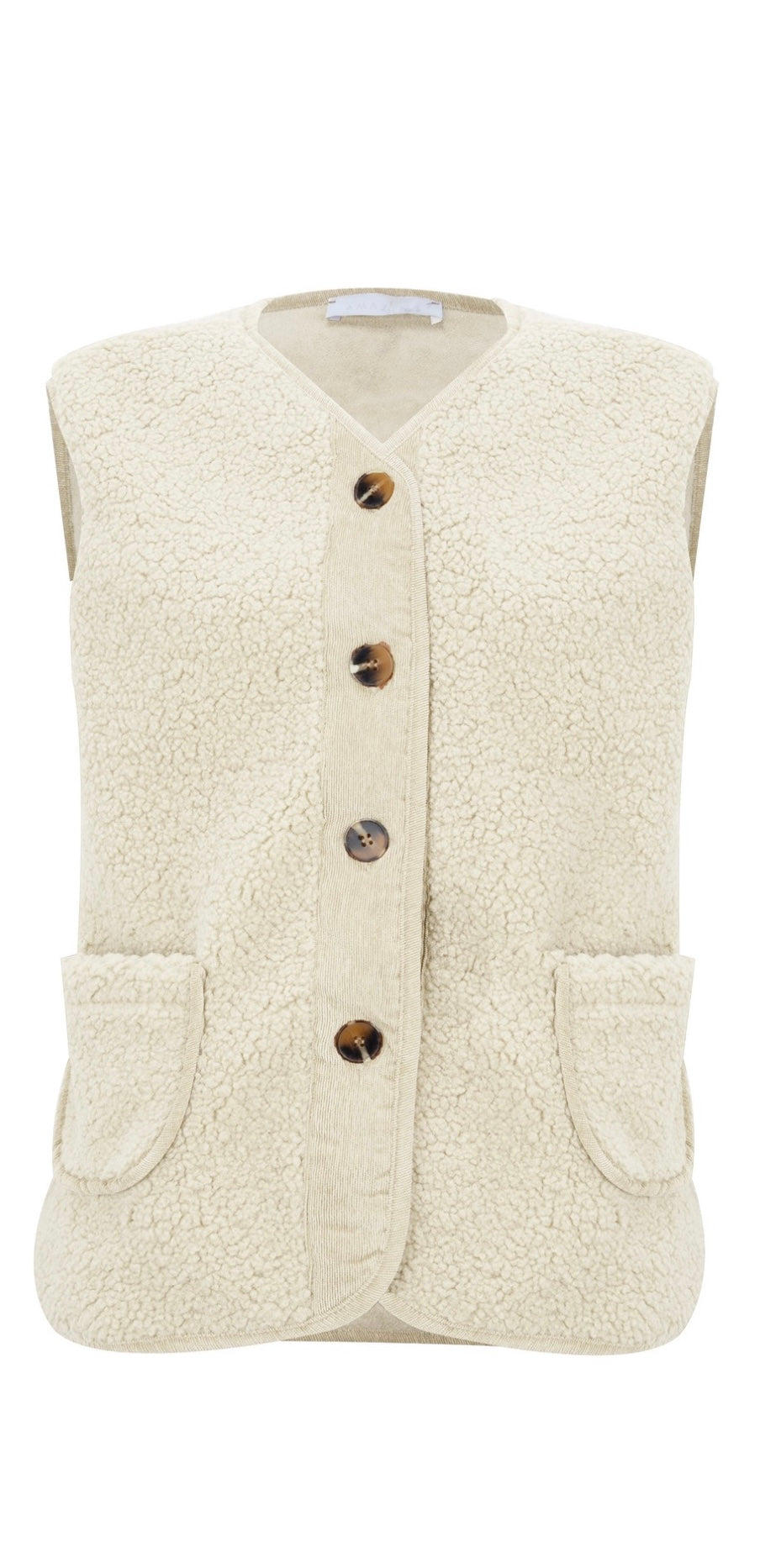 Gilets are a must for the cooler months and this new Teddy Suede Gilet will make a great addition to your wardrobe. Featuring a gentle V-neckline, tortoiseshell button fastening through the front, two front pockets, faux suede lining and contrasting cord trim through the front placket and edging throughout. Simply slip yours on with this season’s printed dresses and everyday knits.