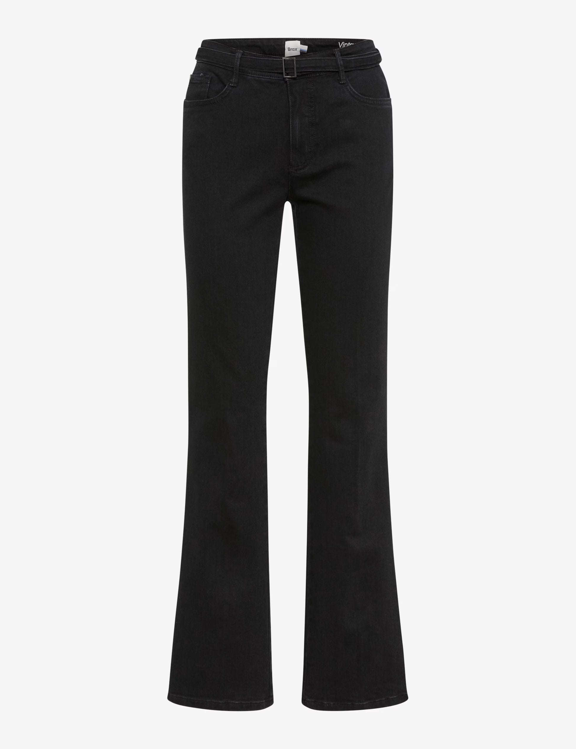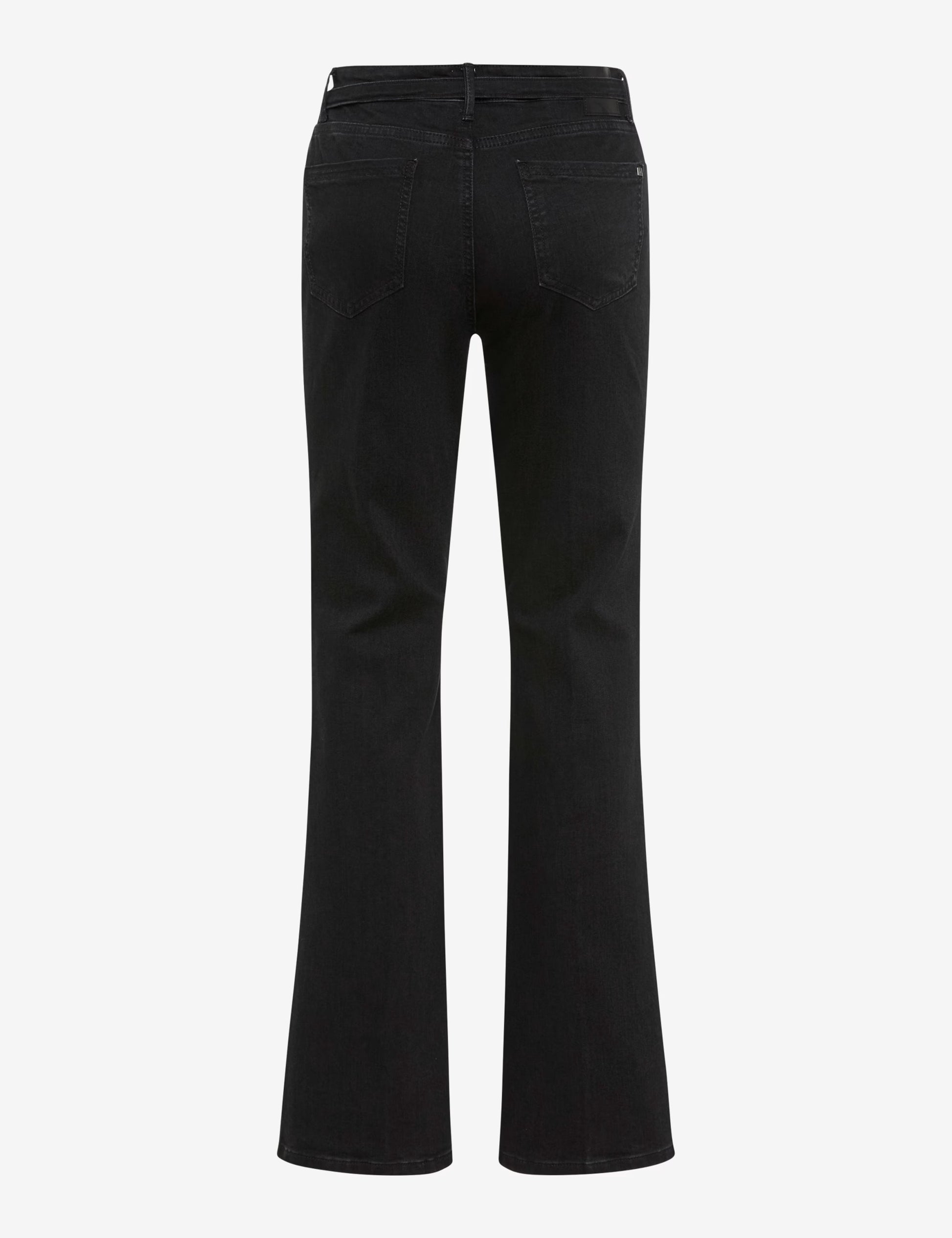 For a casual yet stylish appearance, the Five-Pocket Jeans in STYLE MARY is an excellent choice. The flared Regular Bootcut shape with a standard rise creates a feminine silhouette that is both modern and timeless. Typical details like patch back pockets and side pockets enhance the modern five-pocket design, which gains a feminine touch through the slim tie belt and classic crease. However, the trendy character of these women's jeans is primarily defined by the material. The vintage stretch denim with used effects creates a casual and authentic jeans look. Made from a high-quality cotton blend, the women's pants offer a comfortable wearing experience and exceptional durability. The denim's elasticity ensures freedom of movement and perfectly adapts to the body. With these five-pocket jeans, you can make a fashion statement that effortlessly combines style and comfort.