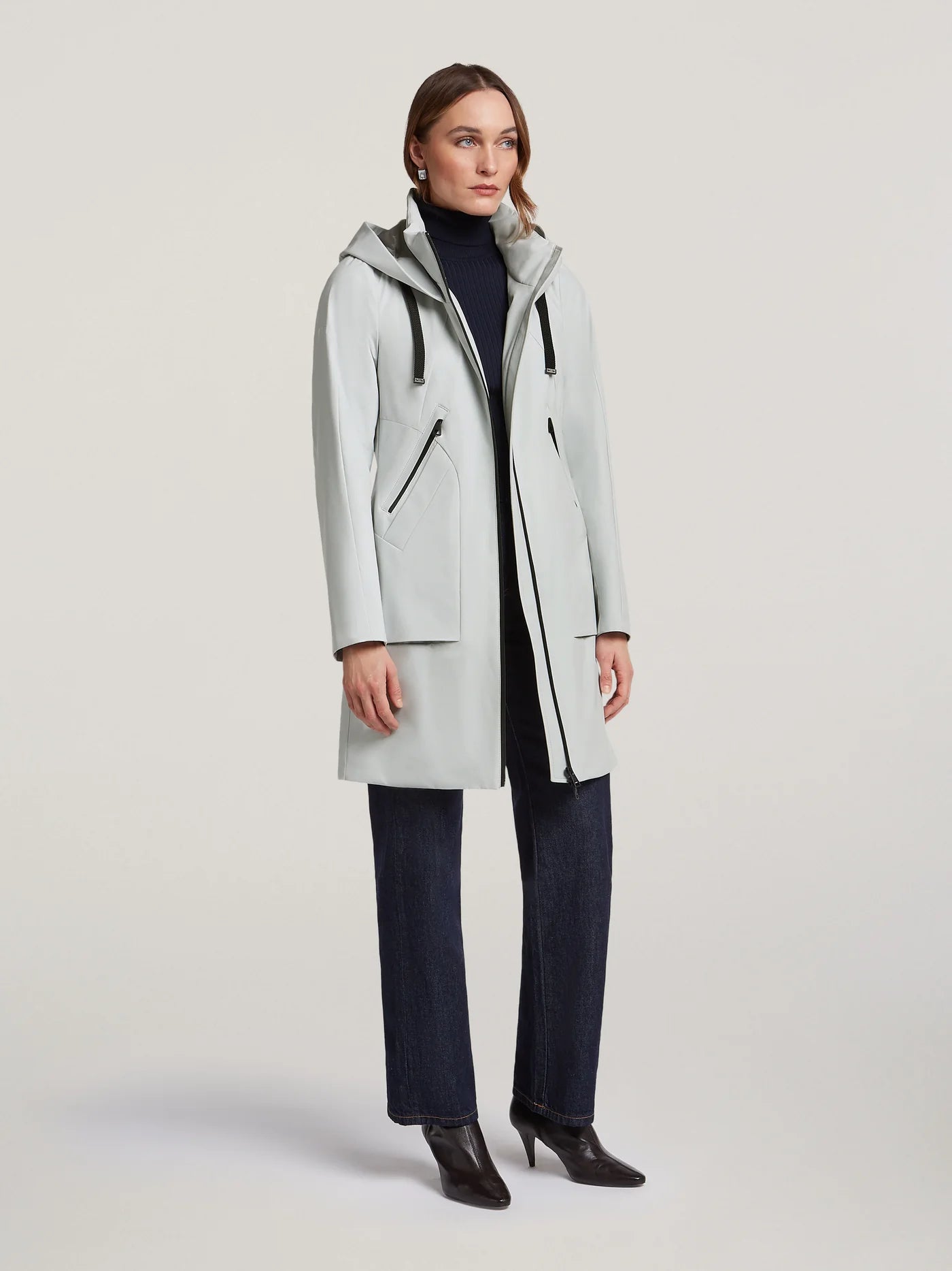 This technical coat is crafted with attention to detail, with a pleat at the back for style and functionality. Waterproof zippers and a mesh ventilation lining at the upper back ensure comfort and protection in any weather. The unique design is completed with souffle pockets, adding a modern, standout touch. Practical yet stylish, this coat combines technical performance with contemporary elegance, in any weather.