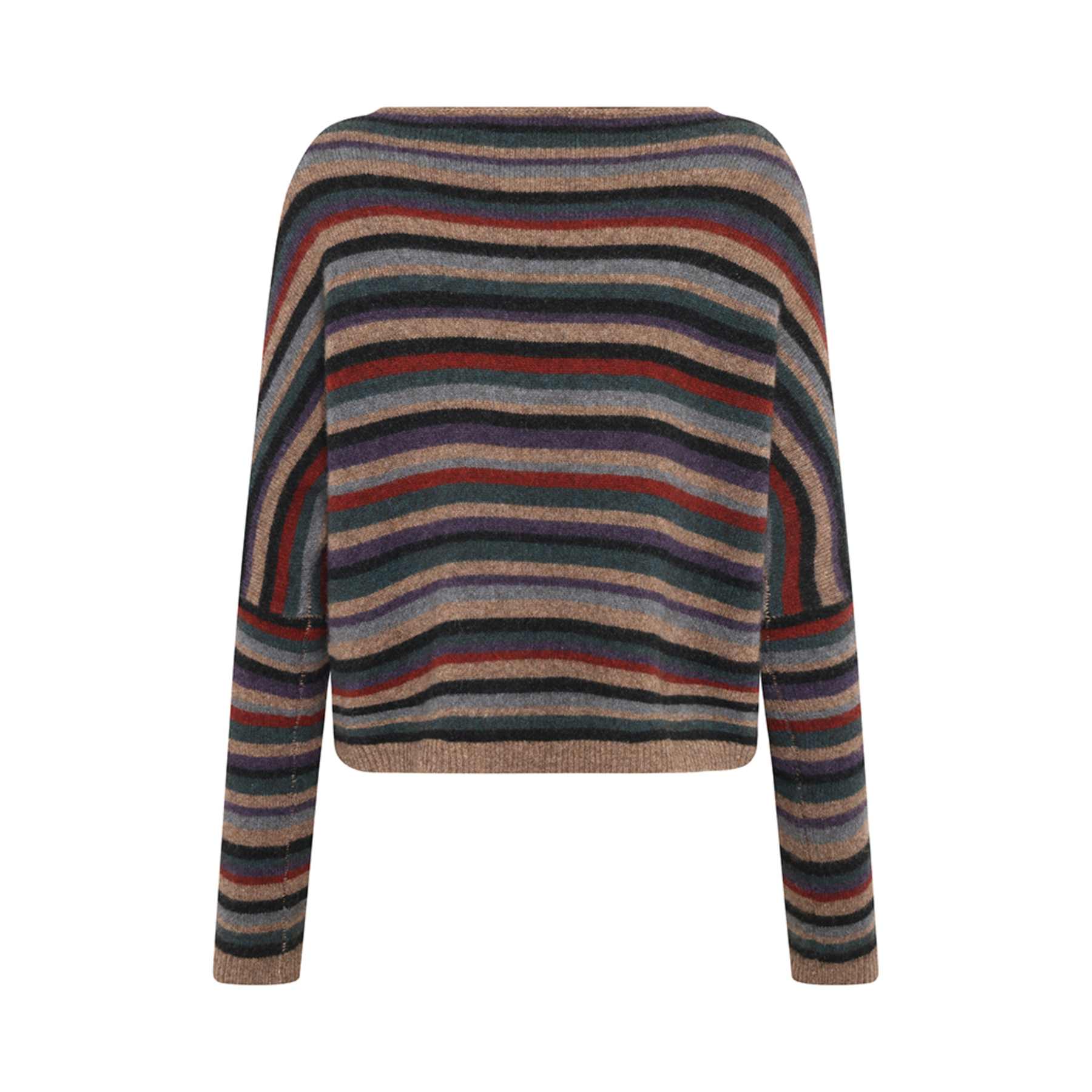 detail : multi-coloured stripe, the pullover har boatneck with rolling edge detail