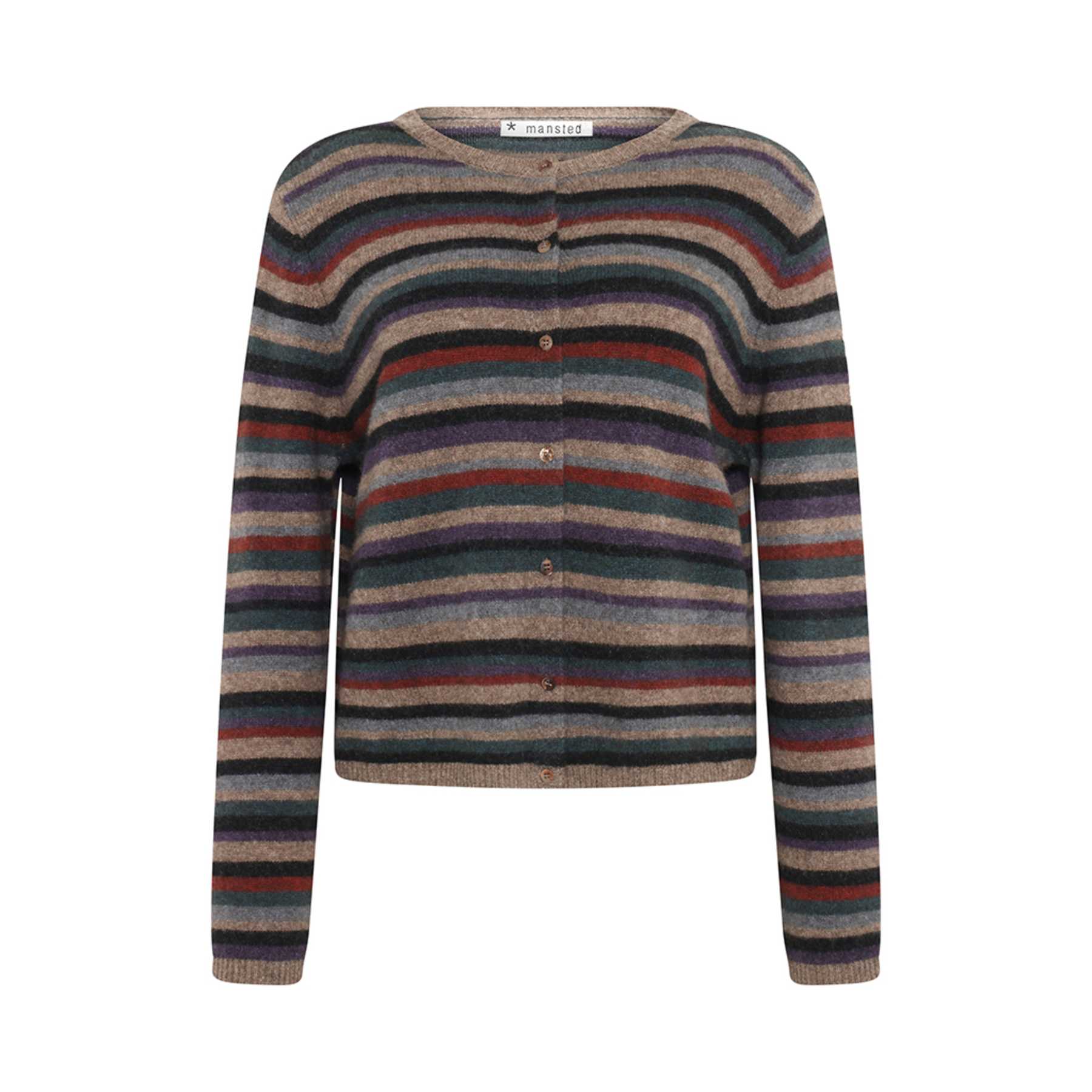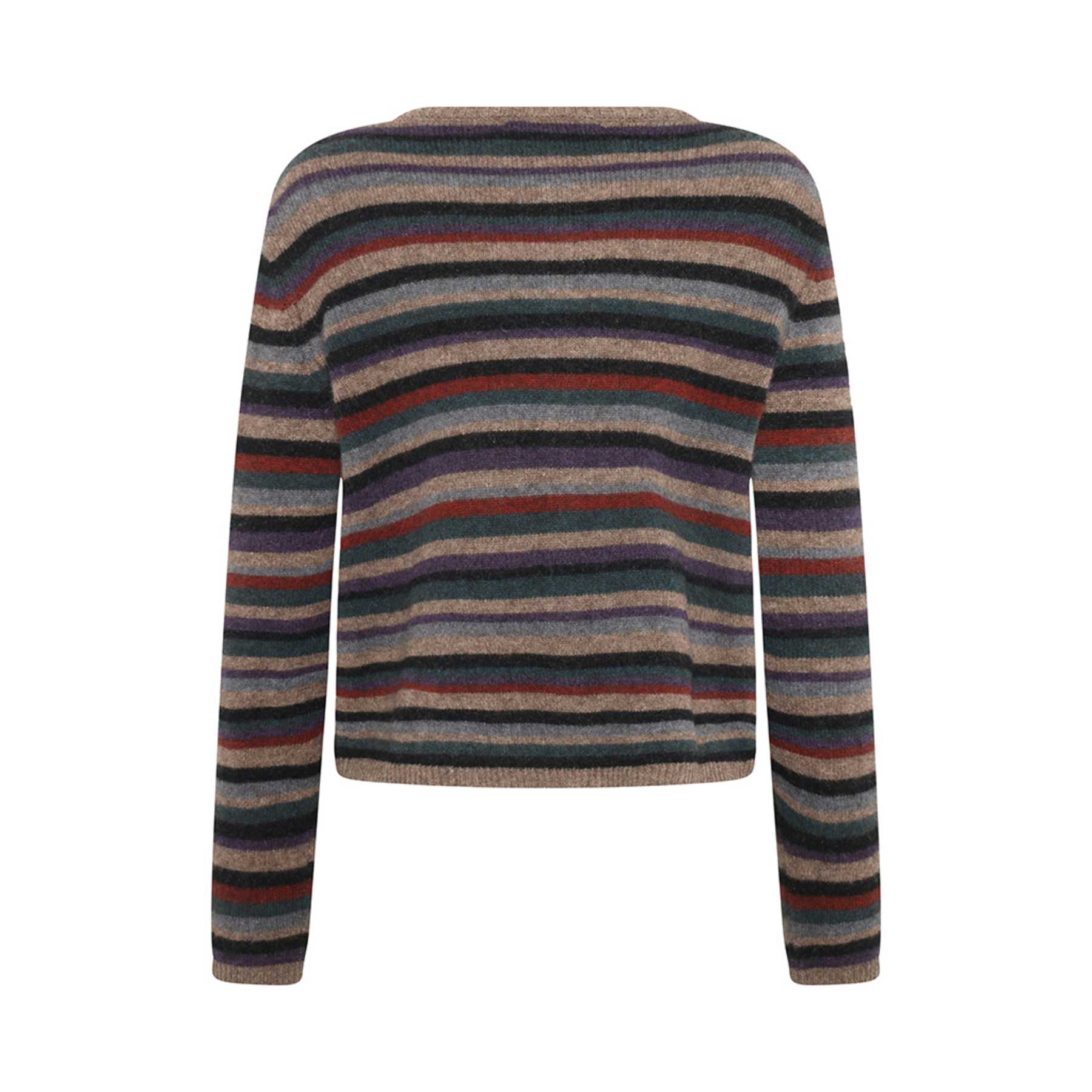 detail : multi-coloured stripe, the cardigan has agoya shell buttons