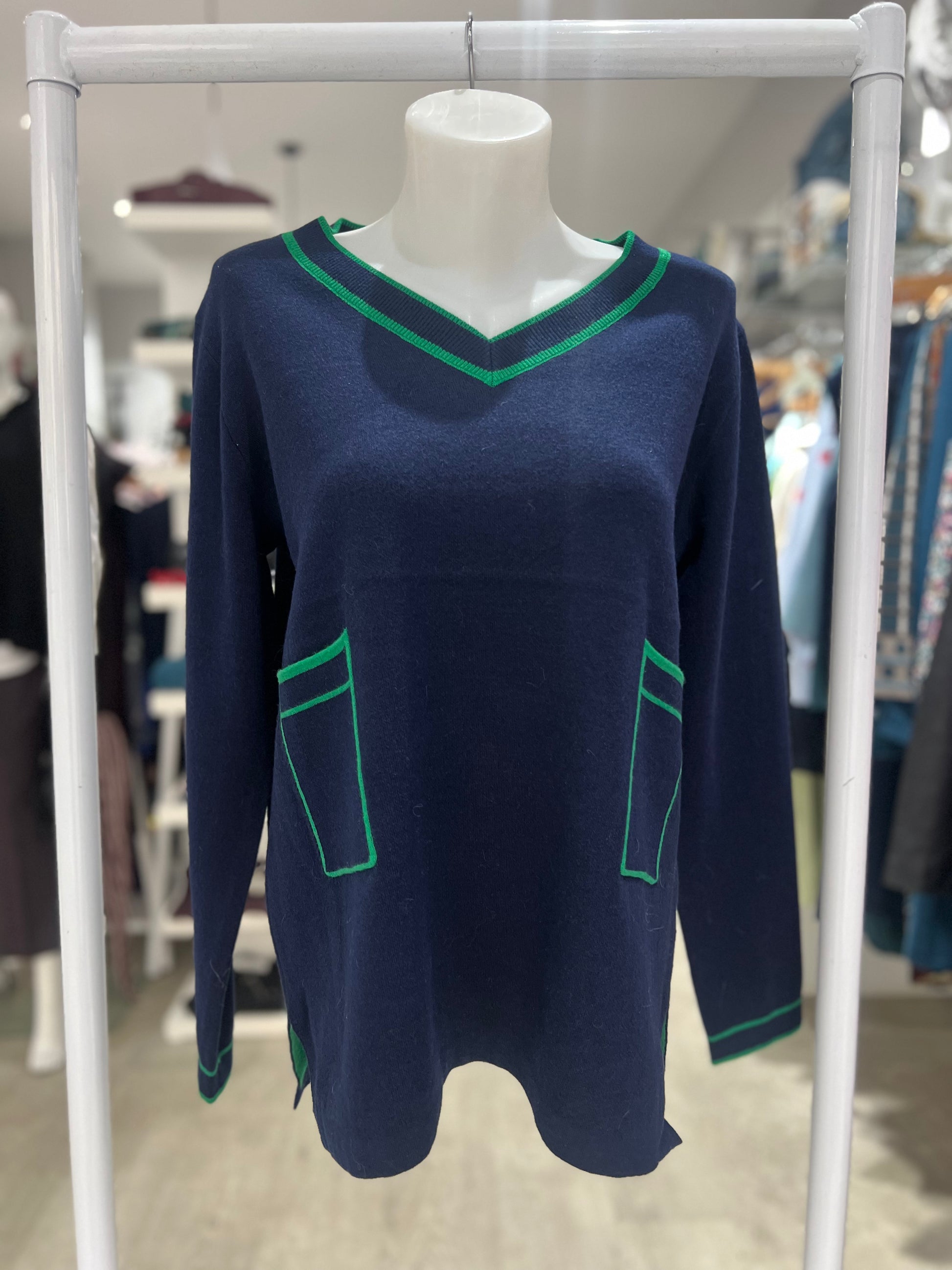 See Saw Navy/Green Pocket Sweater