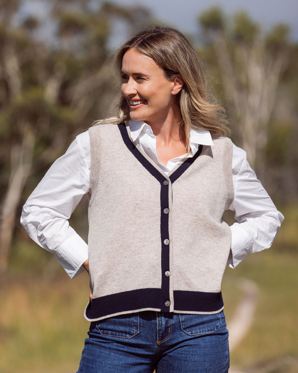 See Saw Navy Merino Knitted Vest