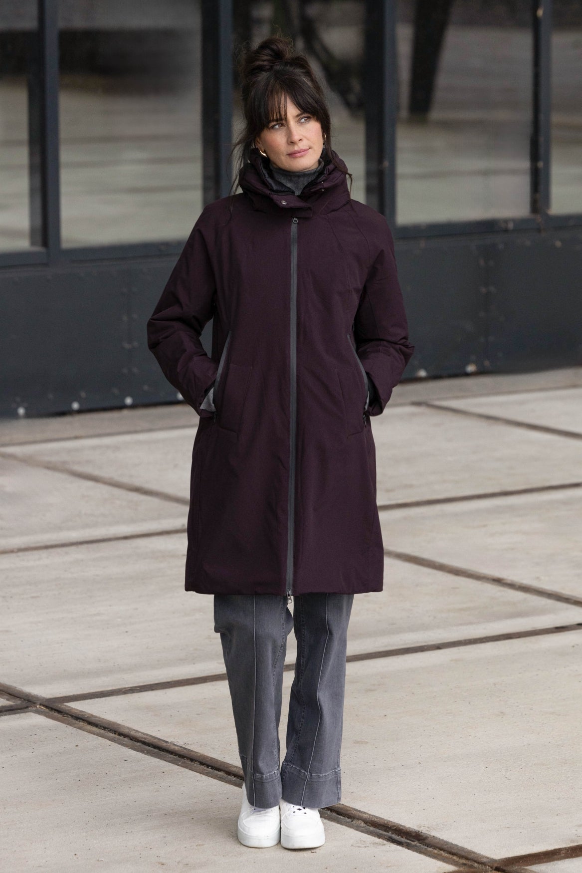 This winter jacket has a smooth fabric and offers practical functionality with double pockets and a 2-way zip. The detachable hood and high collar protect you from the cold, while the extra cuff inside the jacket protects you from the wind. The jacket has a slight A-line.